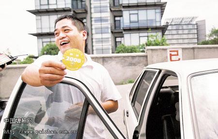 昨天上午,在杭州市第一车辆检测站,车主周先生领到了杭州市开出的第一张“黄色环保标志”,编号100001。周先生坦言,自己买的这辆是1992年产的化油器普桑,知道今天肯定达不了标,但由于车牌很好,打算不久报废后重新购置一辆。从7月1日开始,杭州在市区范围内正式实行机动车环保标志分类管理制度,标志分为“绿色标志”以及“黄色标志”,“环保标志”今后主要是在车辆年检时发放,新车上牌时可以到上牌点一次办手续领取(目前只有车管所和汽车城两处上牌点可以领取)。(钱江晚报 李震宇 摄)