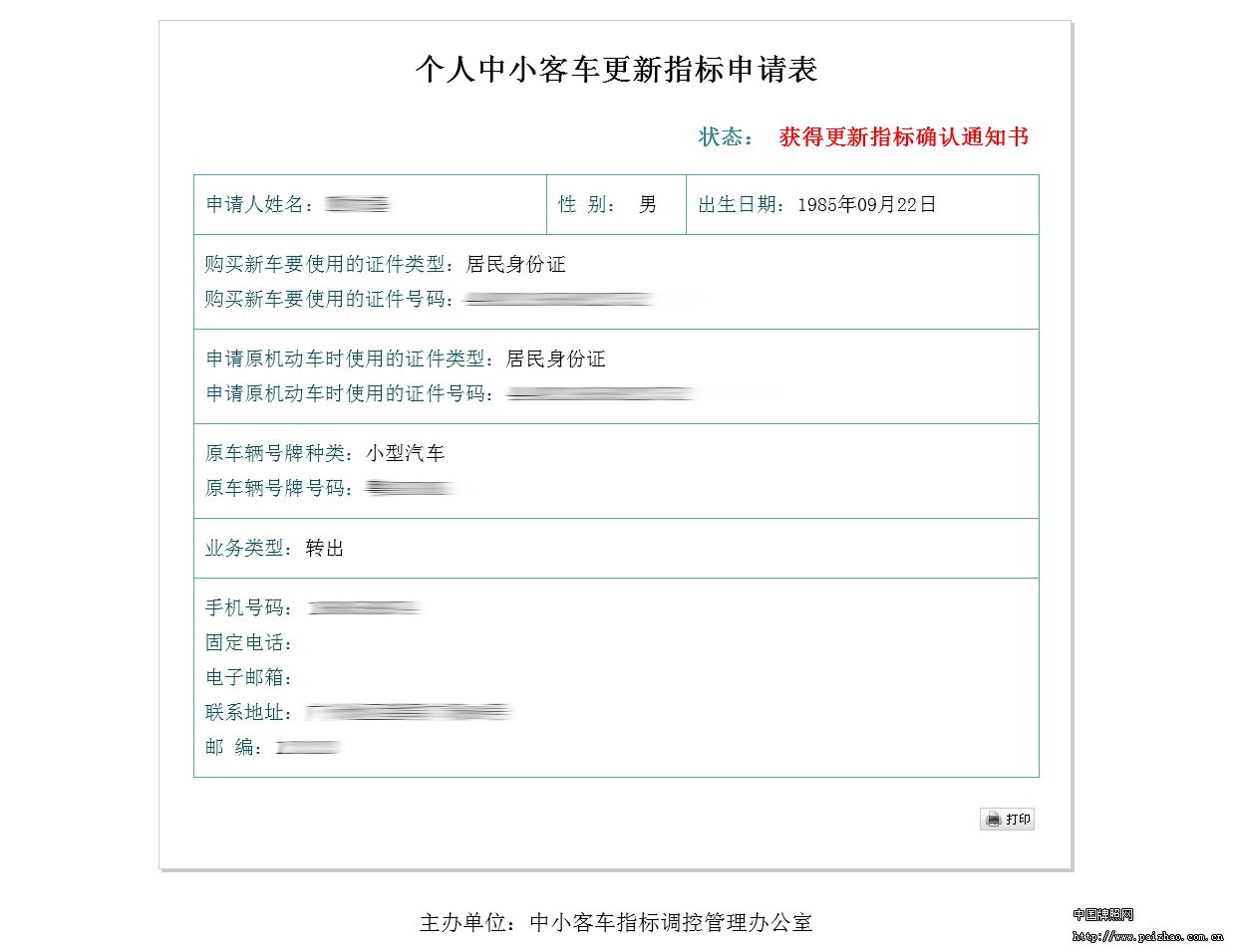 进入个人/单位申请查询页面,录入查询条件,点击【查询】按钮,如已填报过个人/单位中小客车更新指标申请,则可查看到已填报的更新申请信息。