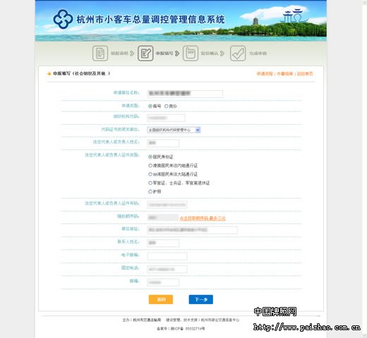 第一步:登录网址登录杭州市小客车总量调控管理信息系统网站:http://xkctk.hzcb.gov.cn 第二步:选择“企业申请”点击【增量指标申请】下【社会组织、其他组织申请】菜单,进入企业申请界面。 ![]() 第三步:阅读《杭州市小客车总量调控管理暂行规定》请阅读《杭州市小客车总量调控管理暂行规定》,然后点击【下一步】,进入申报信息填写界面。 ![]() 第四步:申请填写在申报填写界面,认真仔细阅读各提示,如实填写相应信息。并阅读页面下的提示,信息确认填写无误后点击【下一步】,字段后有必填项的提示为必须填写的信息,没有提示为非必填项。信息中除了“电子邮箱”外其他字段都为必填项,所以请务必如实填写。 ![]() 点击【下一步】后,进入“信息确认页面”,确认填写所有信息无误,然后点击【确认】,弹出提示框,点击【确定】后进入短信确认界面。 ![]() 第五步:短信确认输入正确手机号码,【点击获取短信验证码】,输入获取的短信验证码,【点击获取顺序码】,输入密码,点击【提交】。 ![]() 第六步:完成申请点击【提交】后系统提示“申请成功”,表示数据已经提交到系统后台。完成数据申报后,点击【打印】直接打印申请表单,点击【下载】保存申请表单。 ![]() (中国牌照网编辑:admin) |